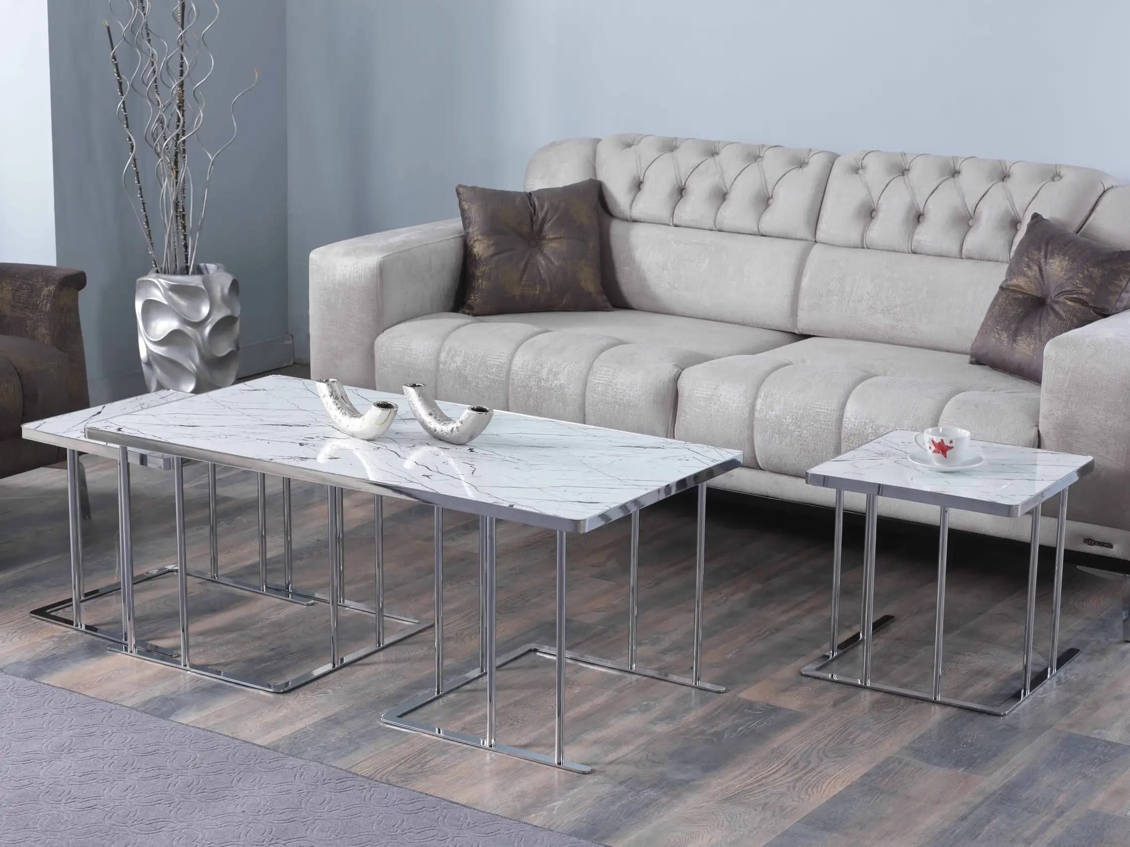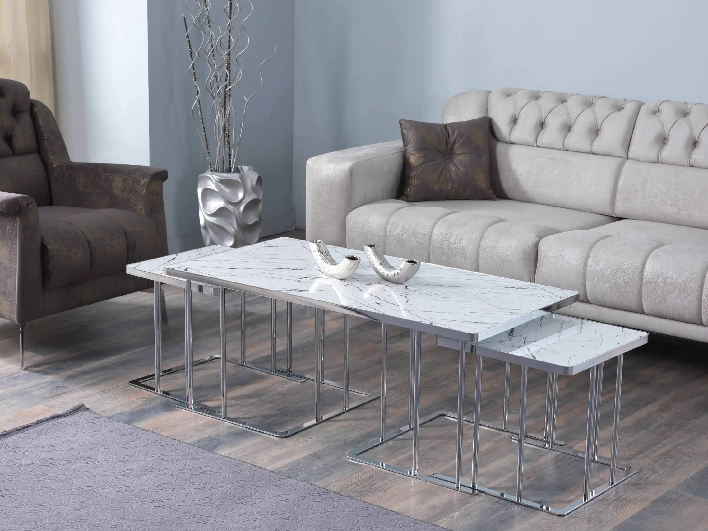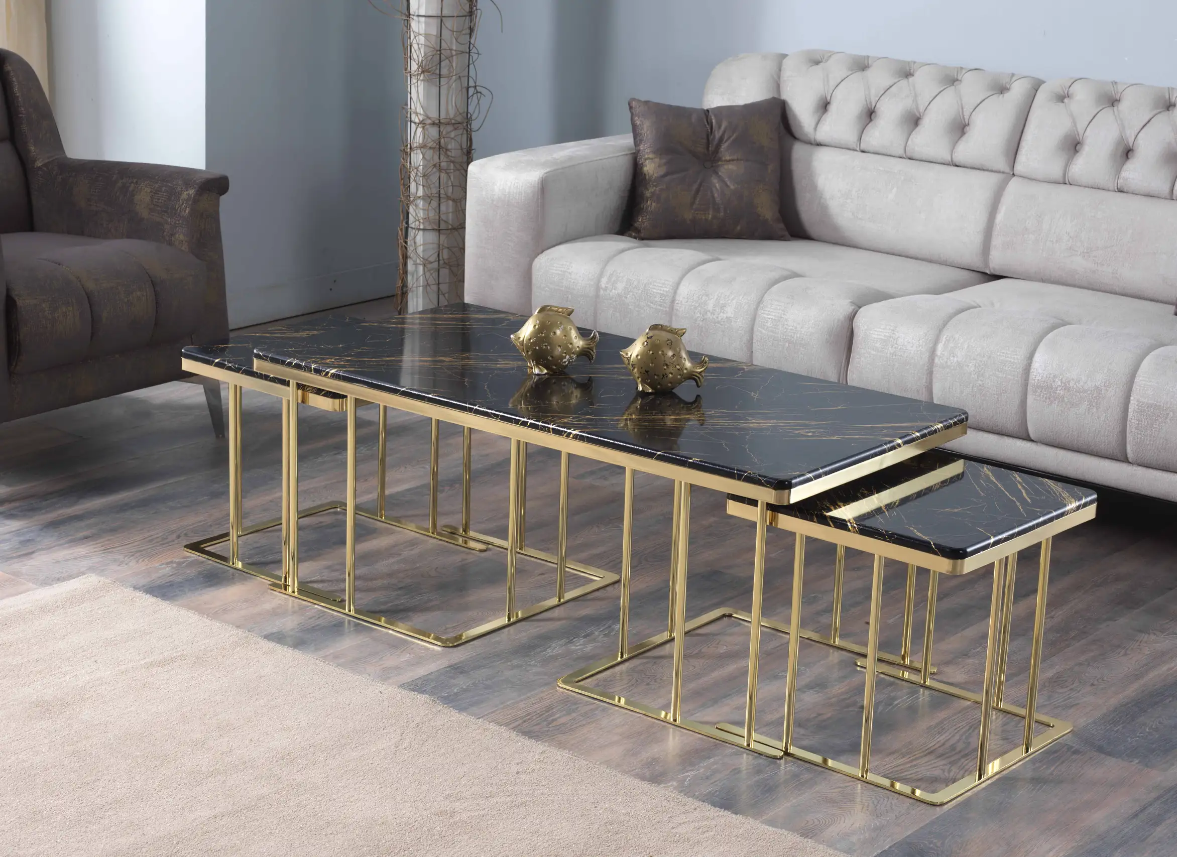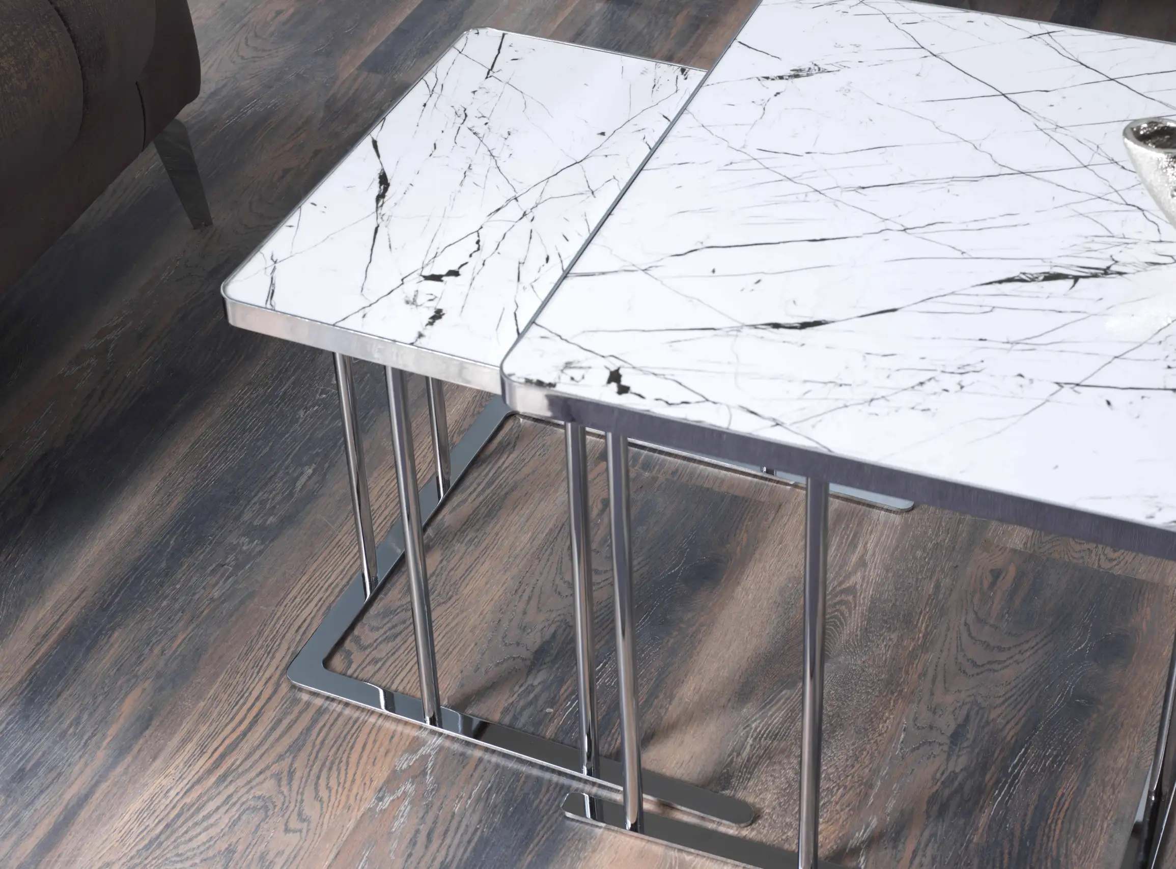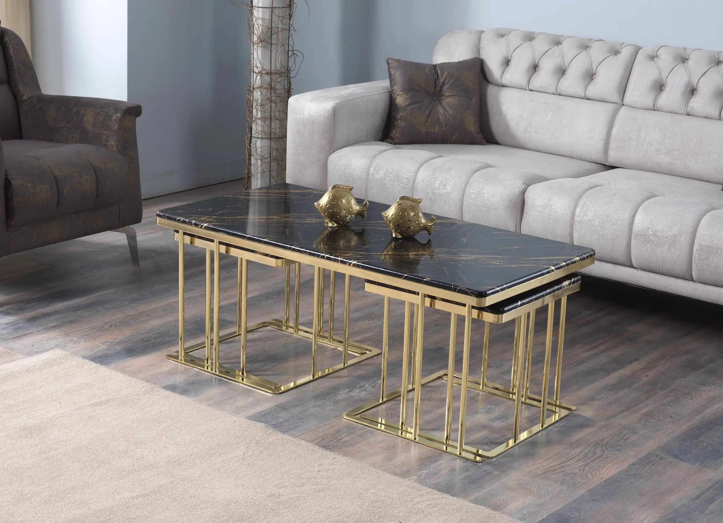 Unul dintre cele mai apreciate aspecte ale acestor mese este posibilitatea extinsă de personalizare. Alege dintr-o gamă variată de culori și finisaje pentru lemn (precum Negru Auriu, Nuc Latin, Marmură Crem, Onyx sau Venato Alb), dar și culori pentru metal (Bronz, Fumuriu, Crom sau Gold) – pentru a crea combinația ideală care reflectă stilul tău personal.