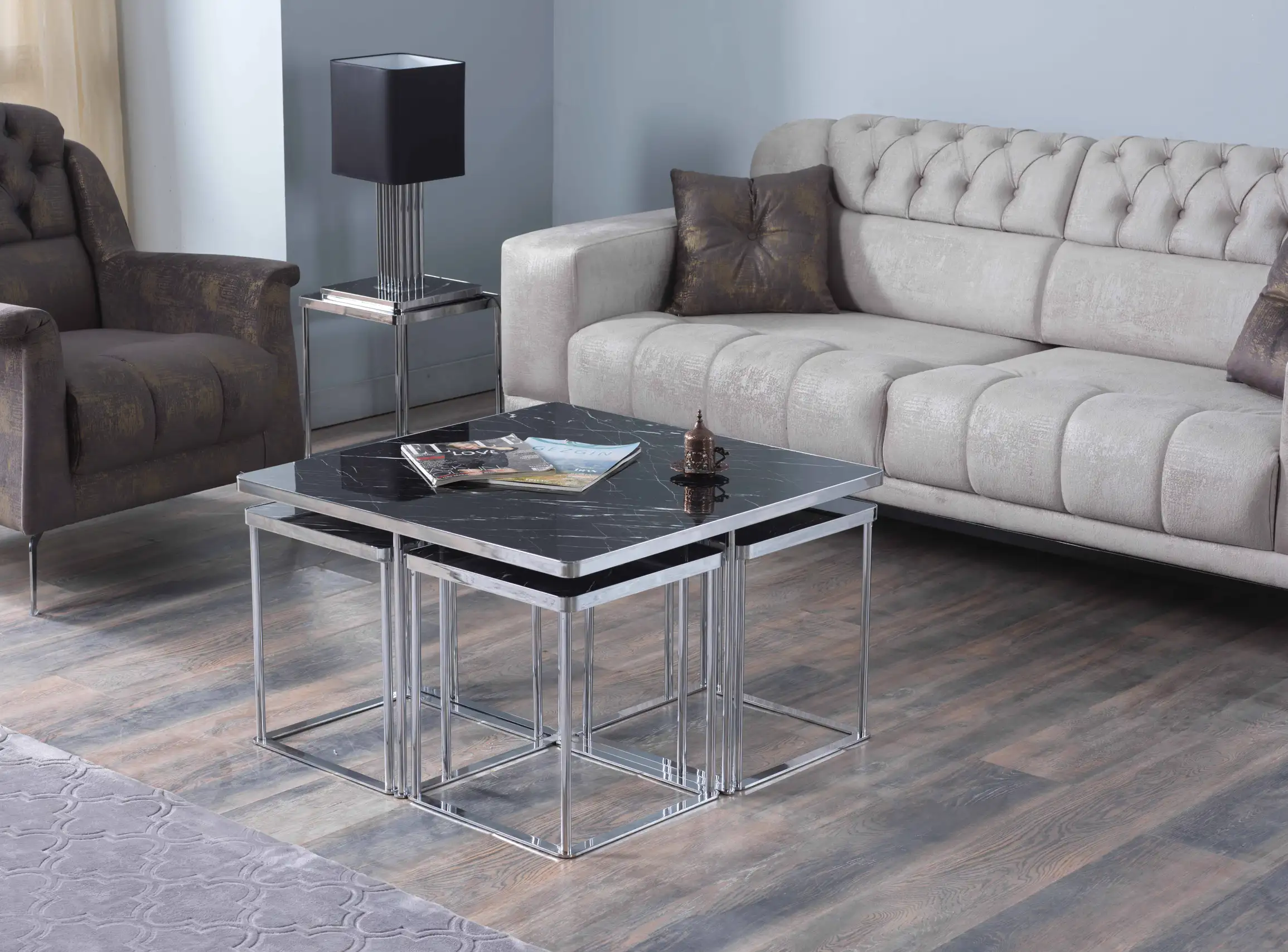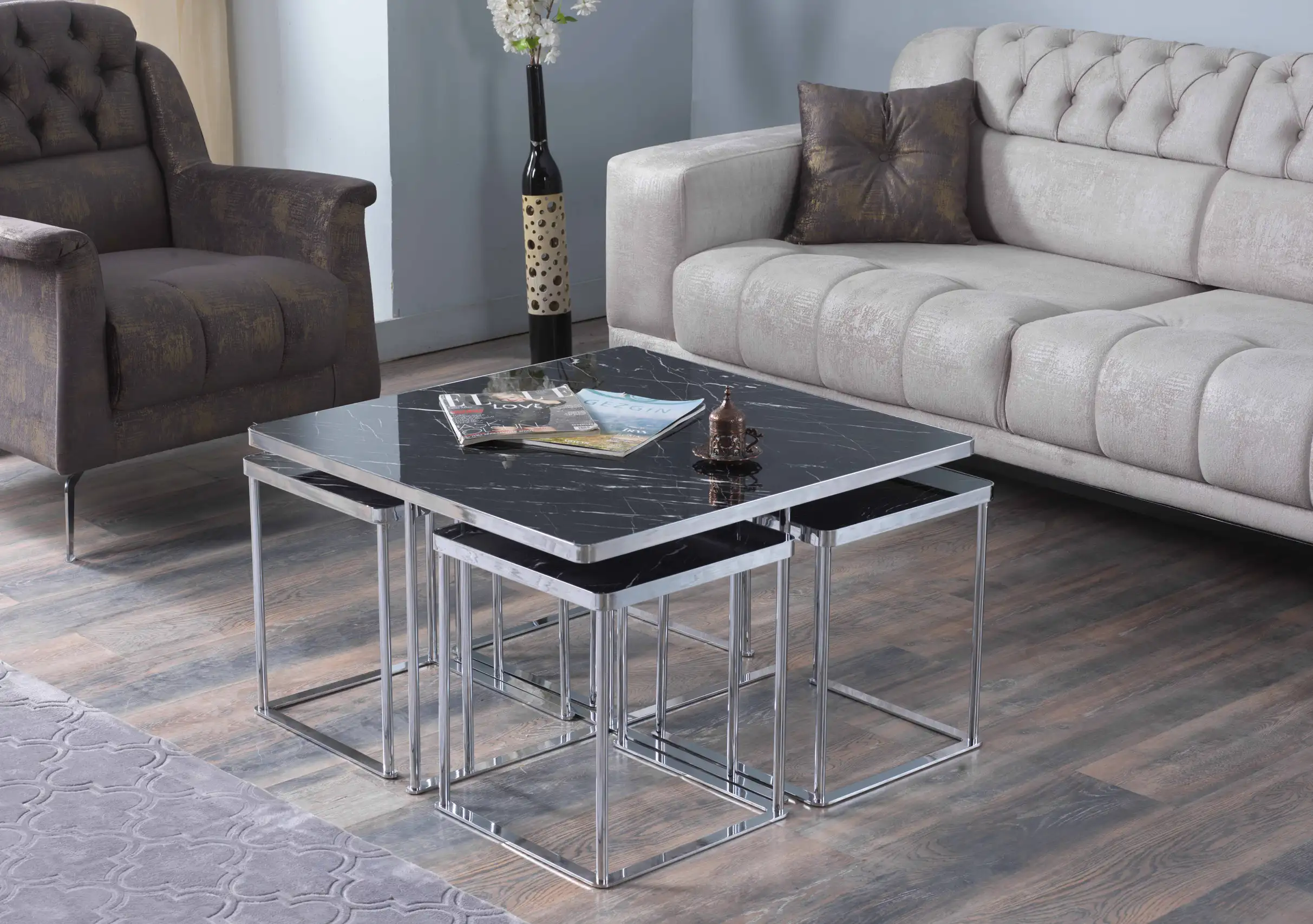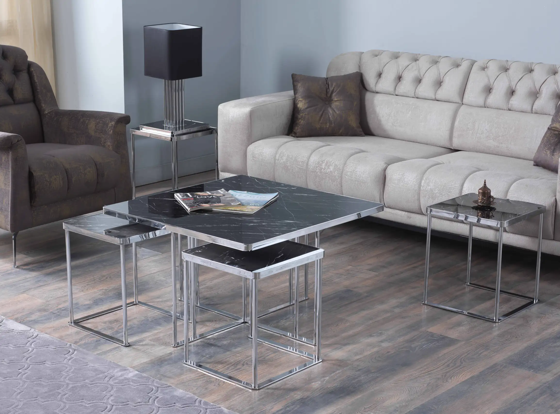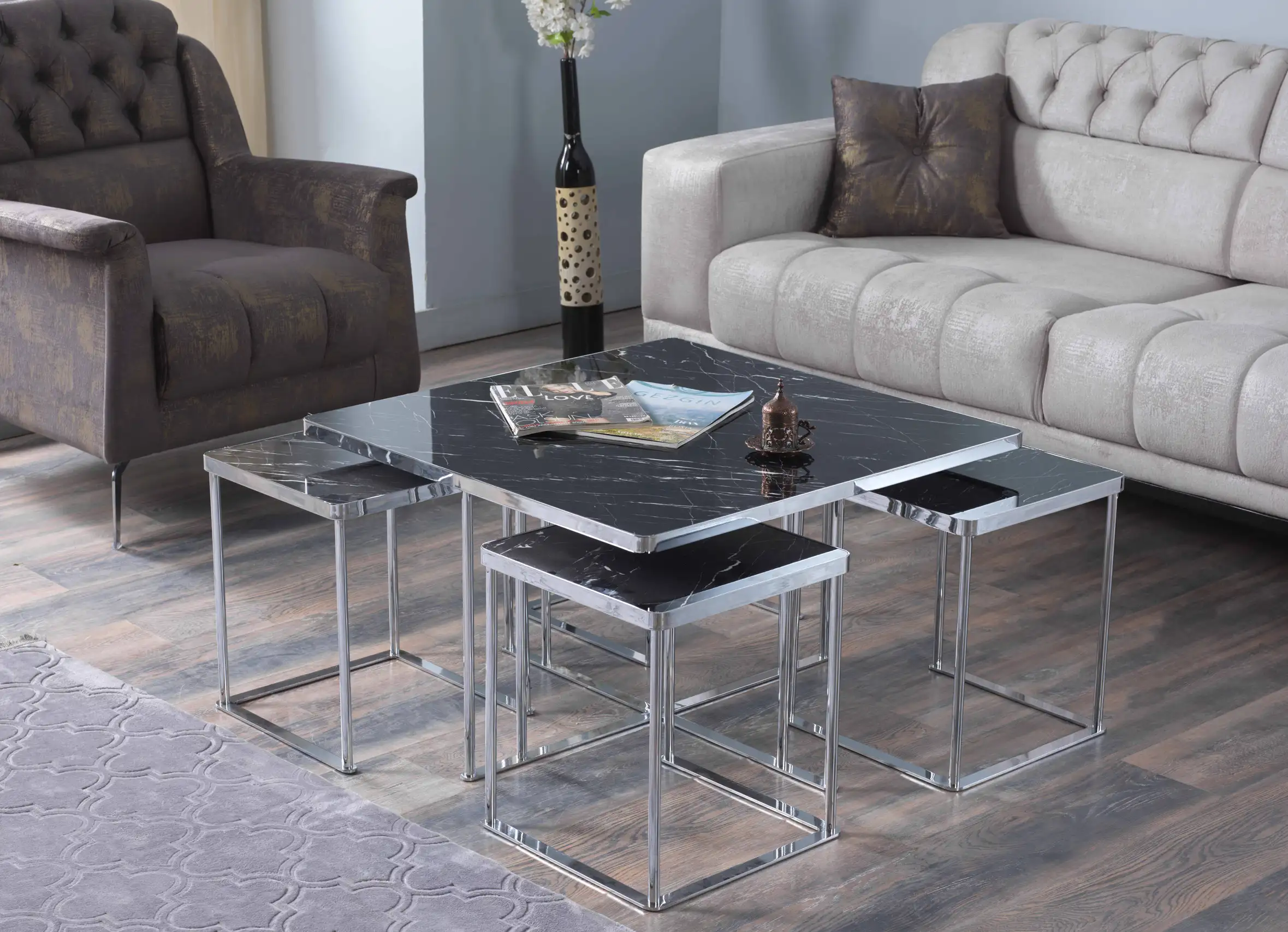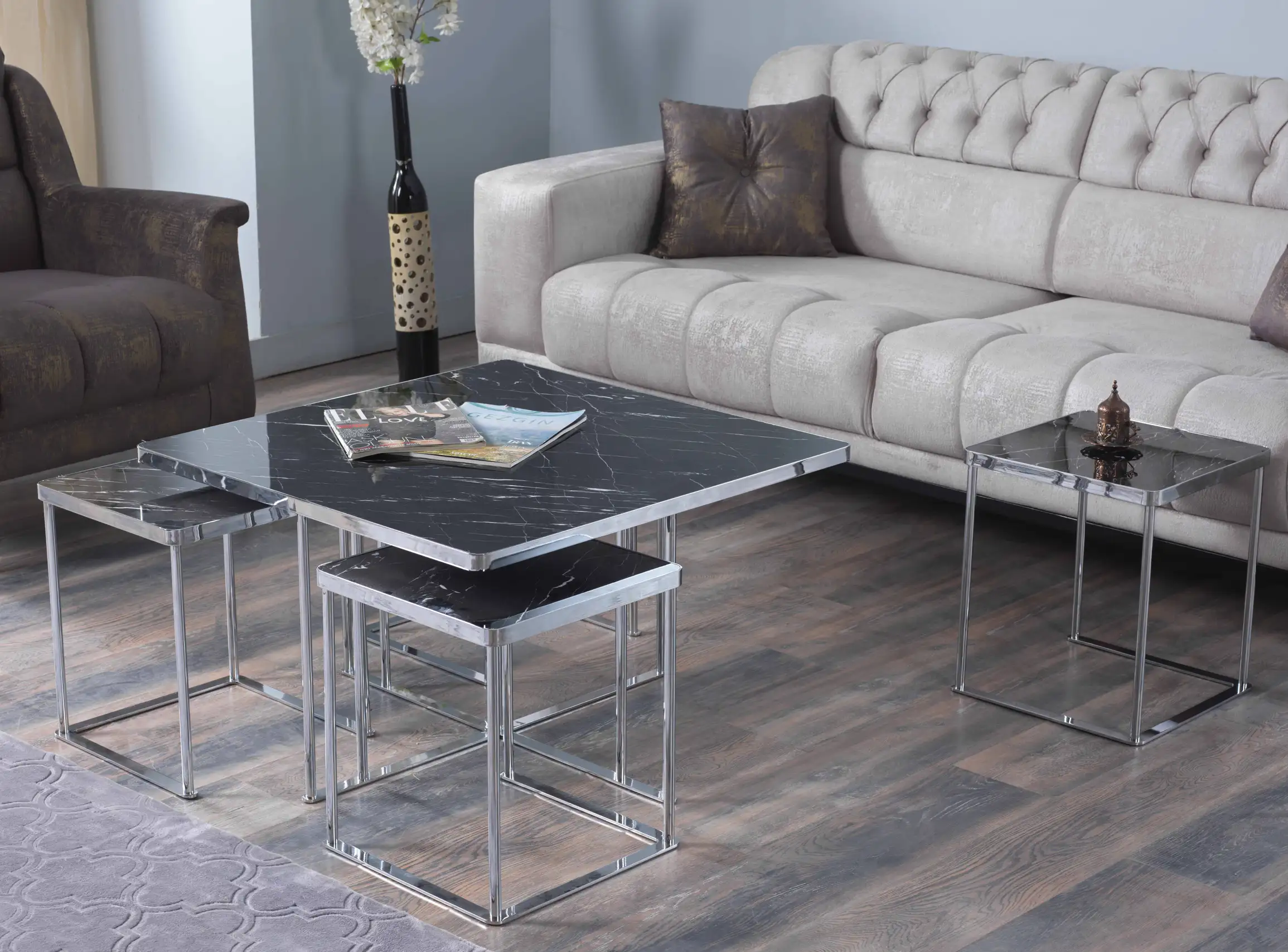 Unul dintre cele mai apreciate aspecte ale acestor mese este posibilitatea extinsă de personalizare. Alege dintr-o gamă variată de culori și finisaje pentru lemn (precum Negru Auriu, Nuc Latin, Marmură Crem, Onyx sau Venato Alb), dar și culori pentru metal (Bronz, Fumuriu, Crom sau Gold) – pentru a crea combinația ideală care reflectă stilul tău personal.