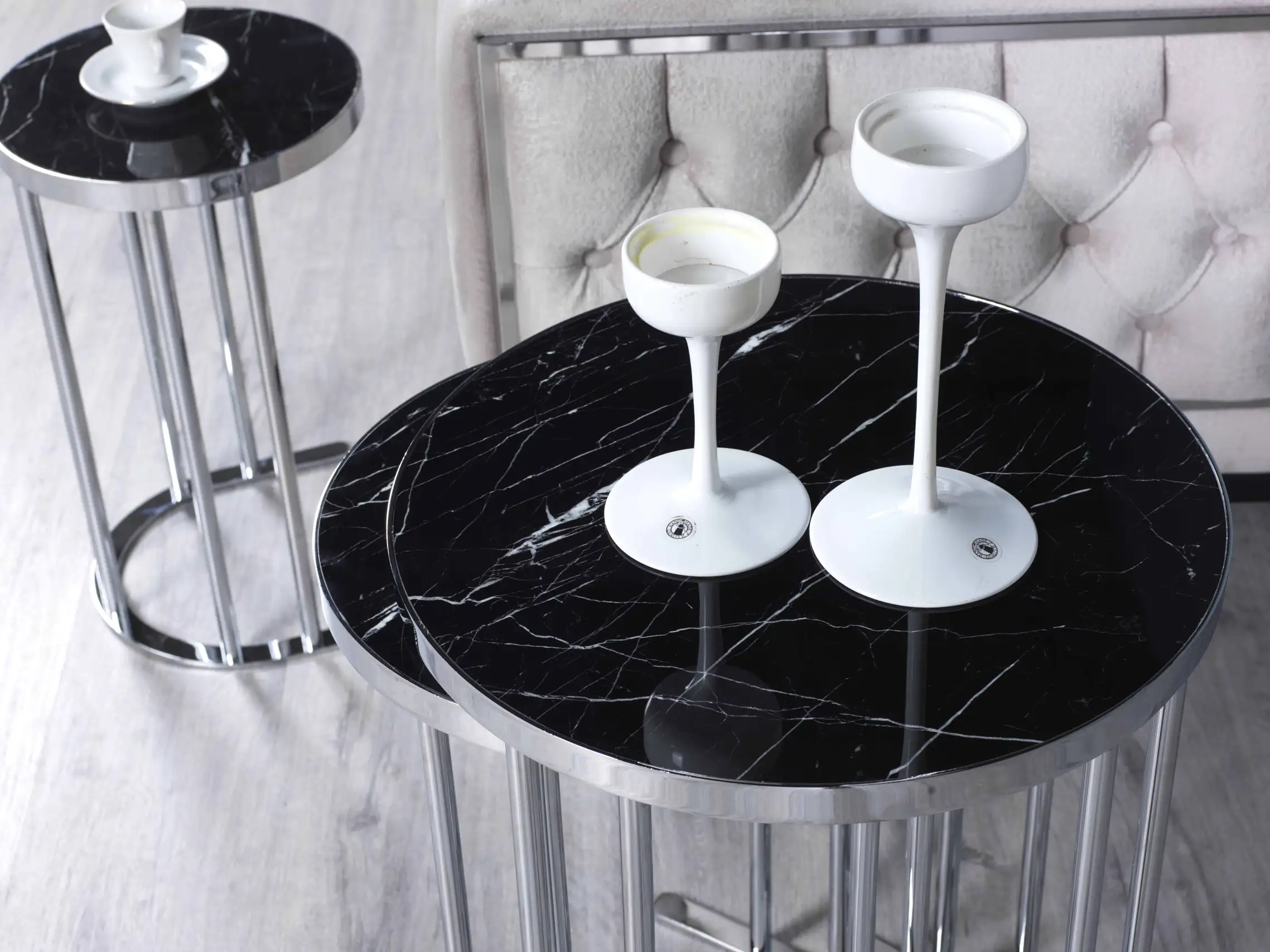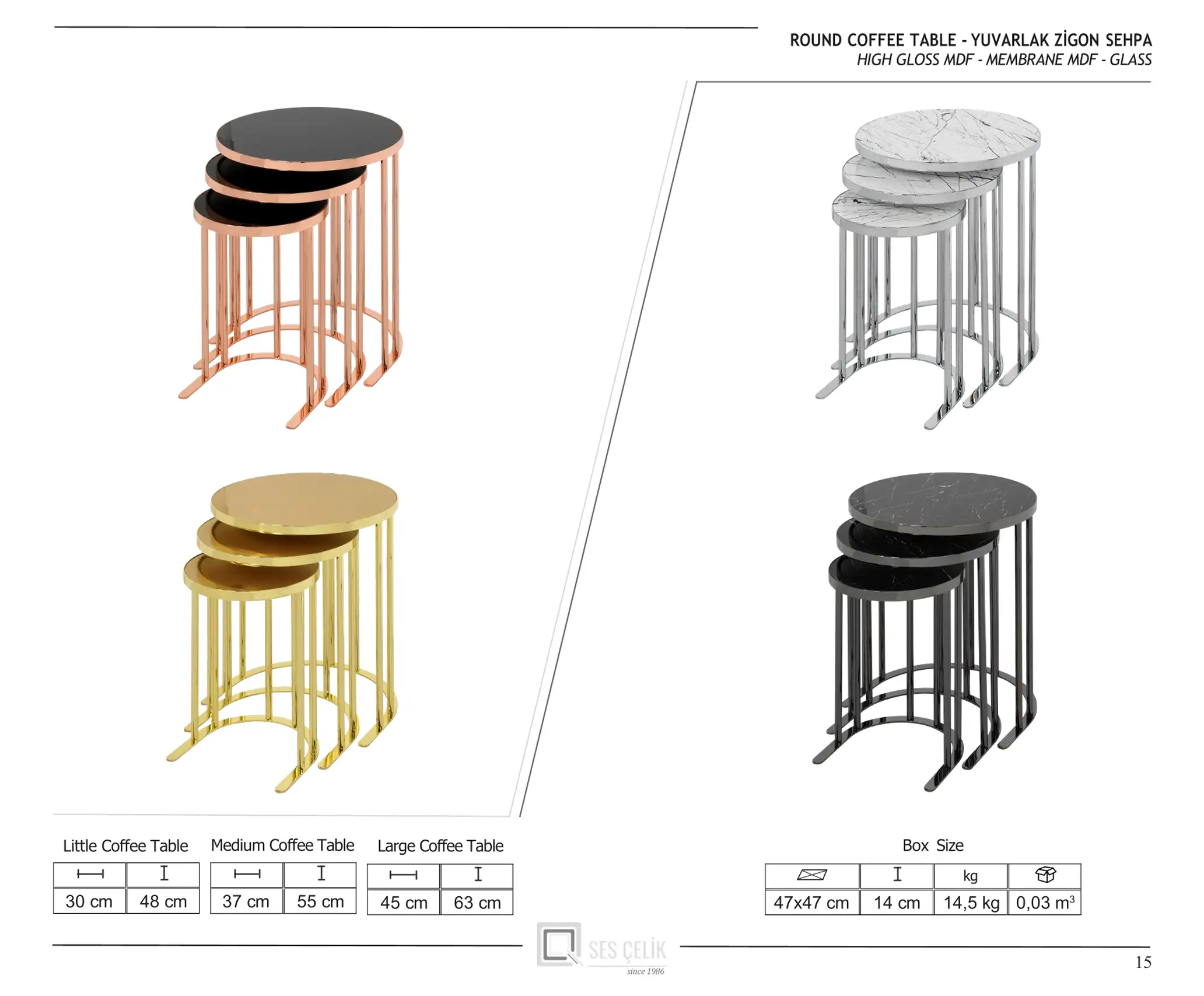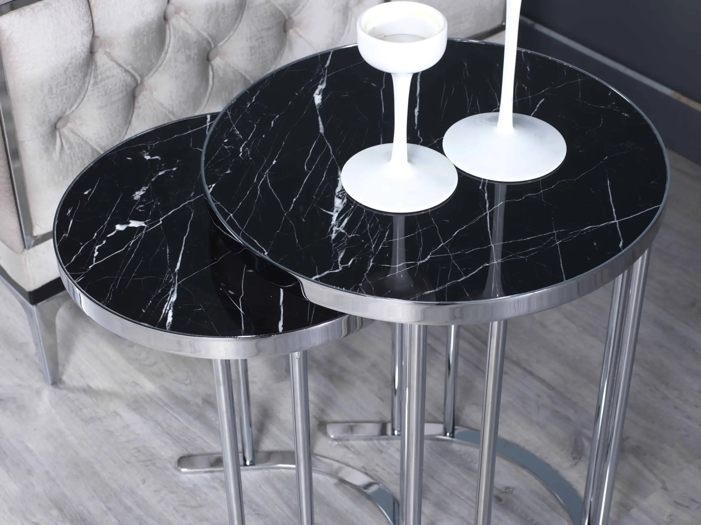 Unul dintre cele mai apreciate aspecte ale acestor mese este posibilitatea extinsă de personalizare. Alege dintr-o gamă variată de culori și finisaje pentru lemn (precum Negru Auriu, Nuc Latin, Marmură Crem, Onyx sau Venato Alb), dar și culori pentru metal (Bronz, Fumuriu, Crom sau Gold) – pentru a crea combinația ideală care reflectă stilul tău personal.