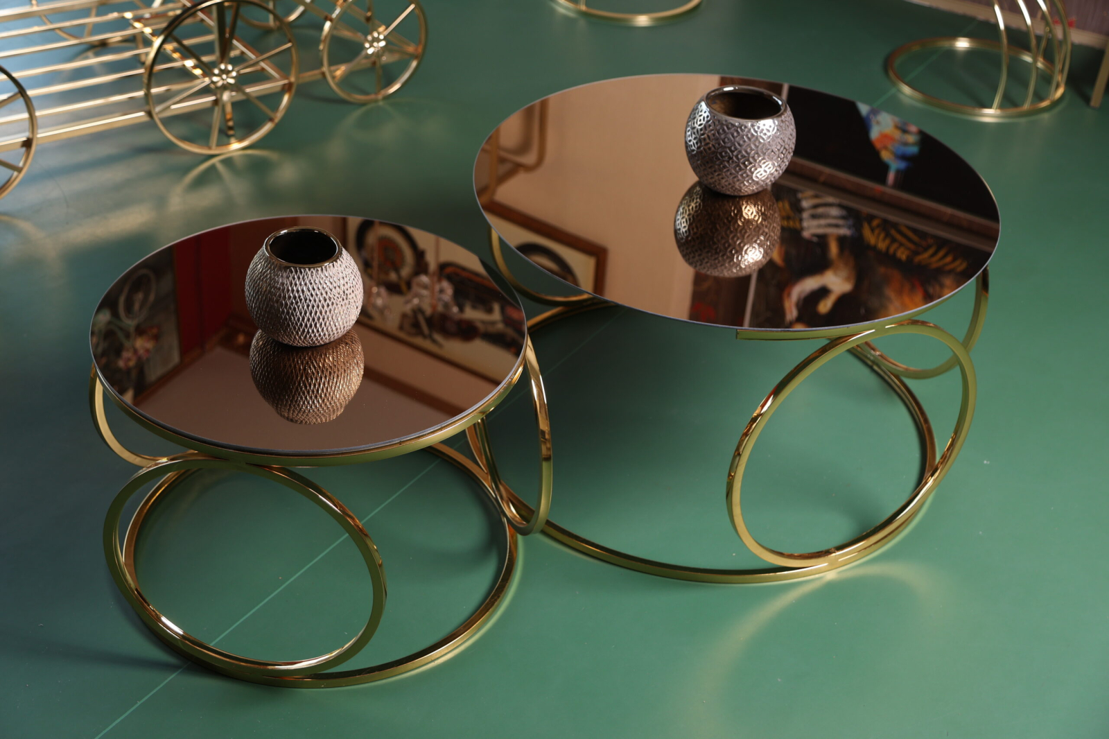 Dimensiune: Set de 2 mese, masa 1 d80 h 48 , masa 2 d58 h 42