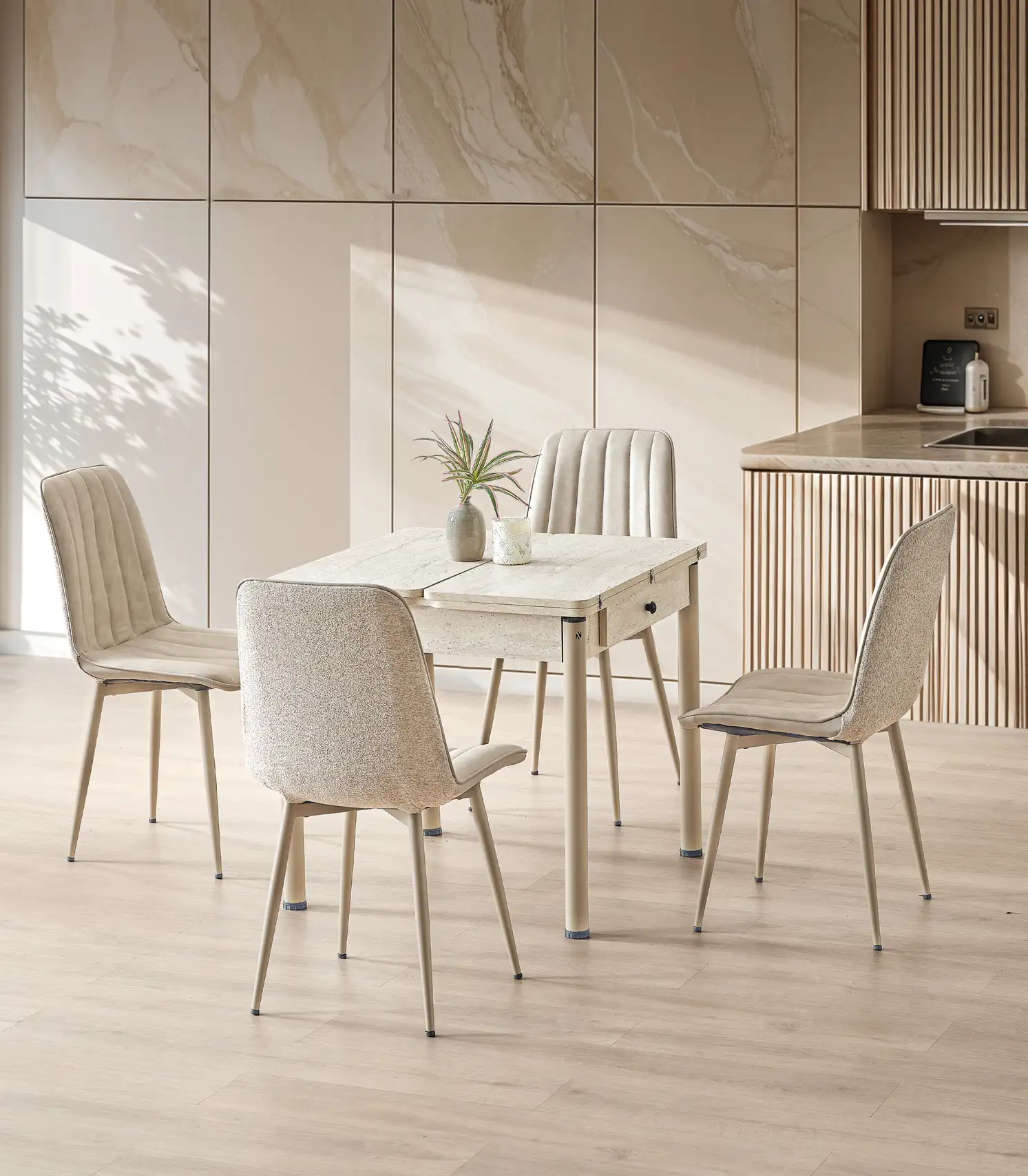 Setul este format dintr-o masă Neva Traverten și cappuccino și 4 scaune Togo cappuccino.