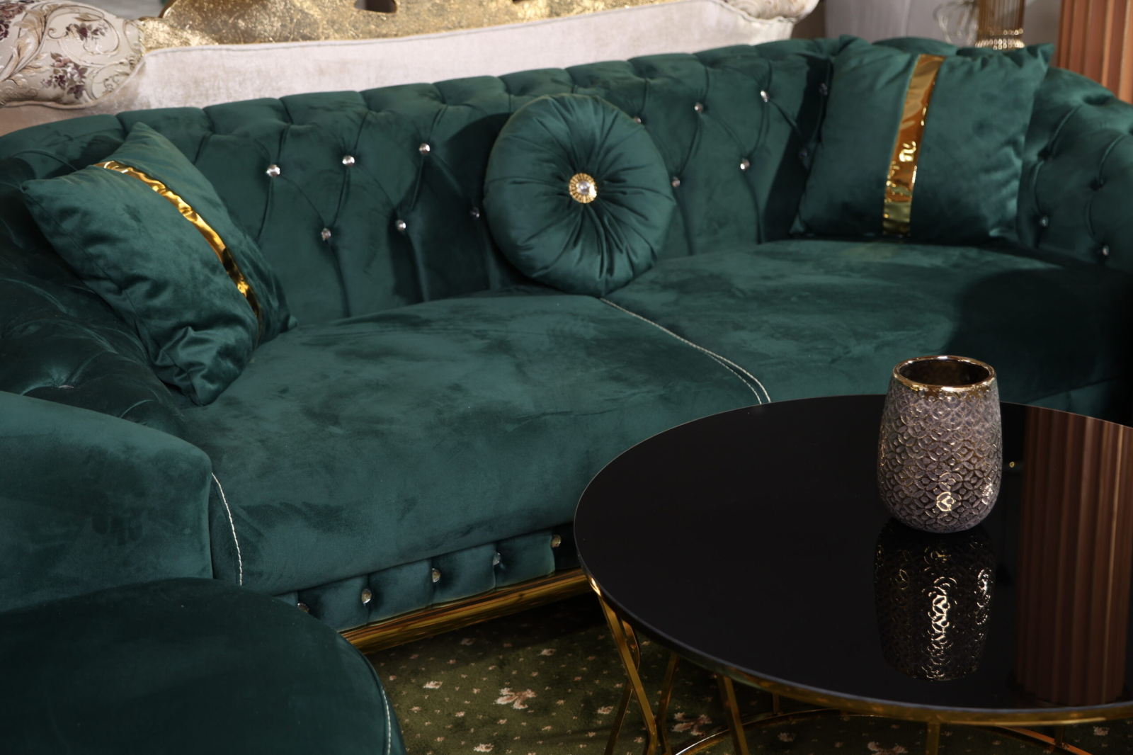 Măiestrie Manuală: Fiecare detaliu al acestei canapele este realizat manual, reflectând pasiunea și priceperea transmise cu grijă de-a lungul a trei generații.