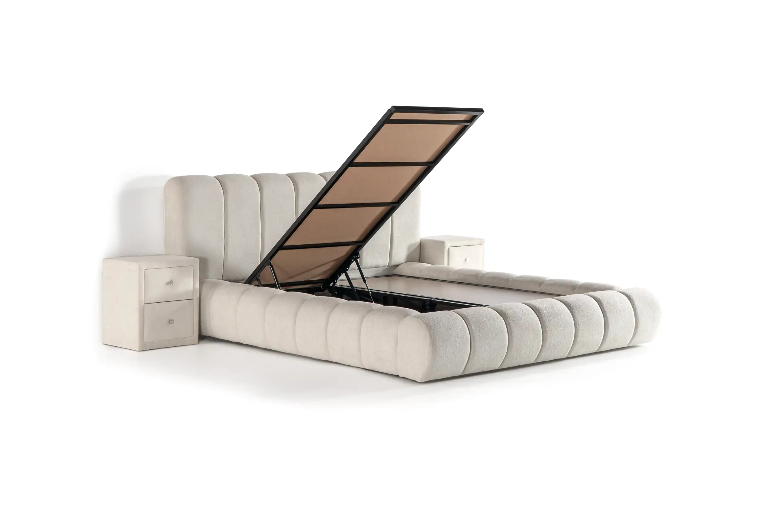 Unul dintre cele mai mari avantaje ale acestui pat este spațiul generos de depozitare integrat sub saltea. Mecanismul de ridicare este robust și ușor de utilizat, permițând acces rapid la compartimentul ascuns. Acest spațiu suplimentar este ideal pentru depozitarea lenjeriilor, păturilor sau altor obiecte, ajutând la menținerea unui dormitor organizat și aerisit.
