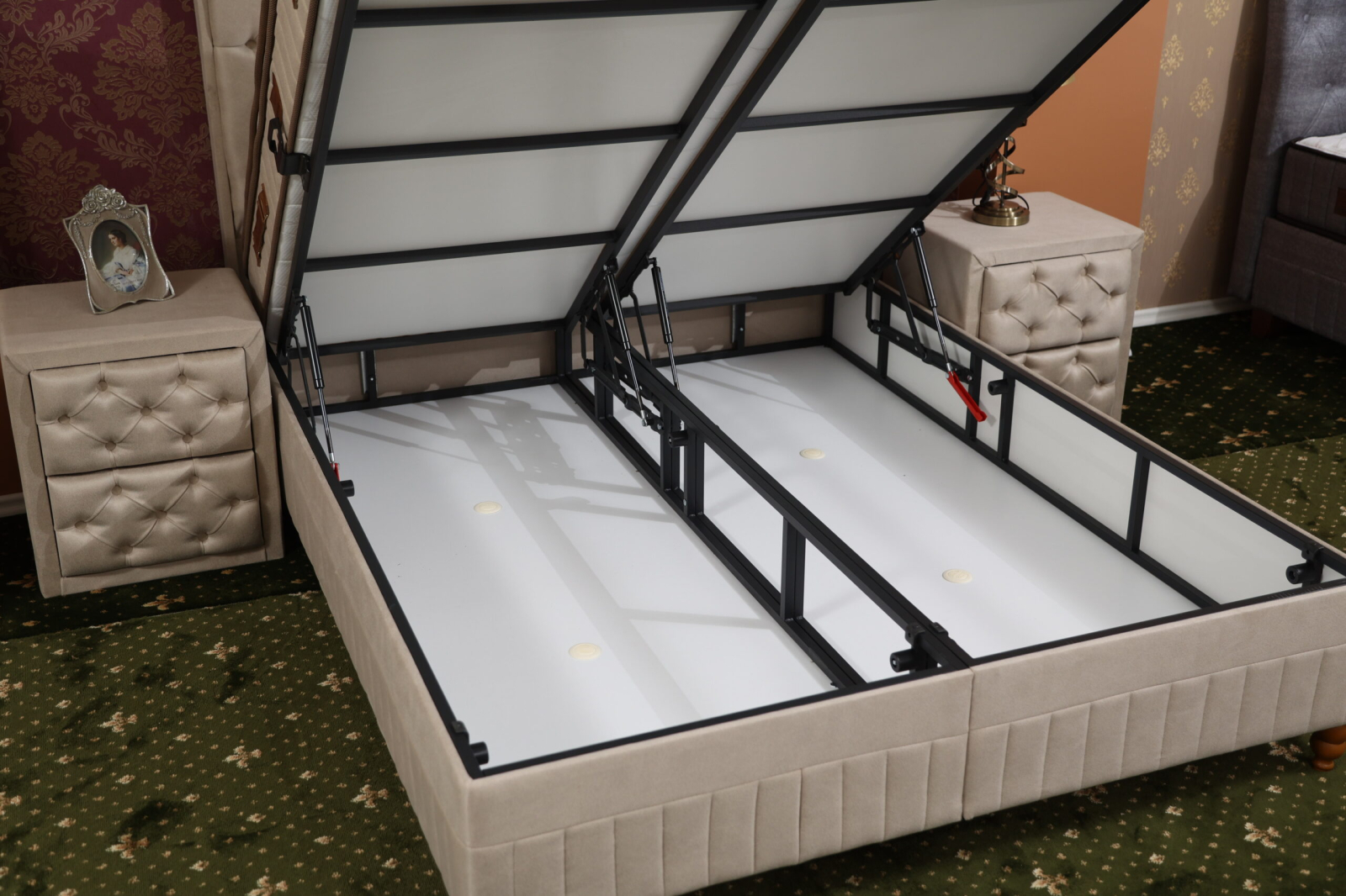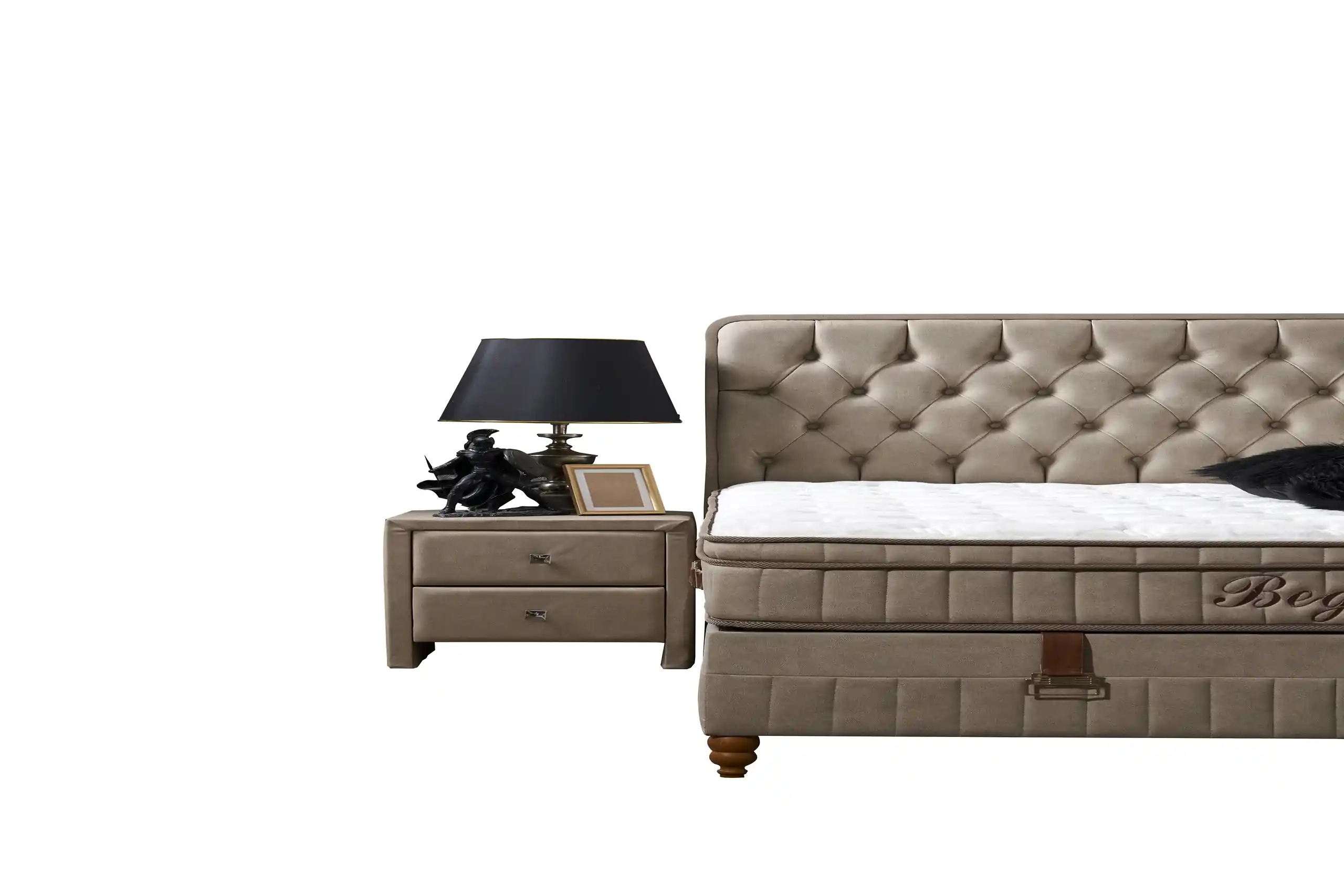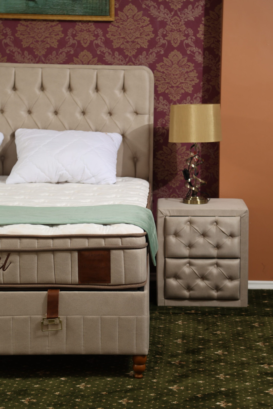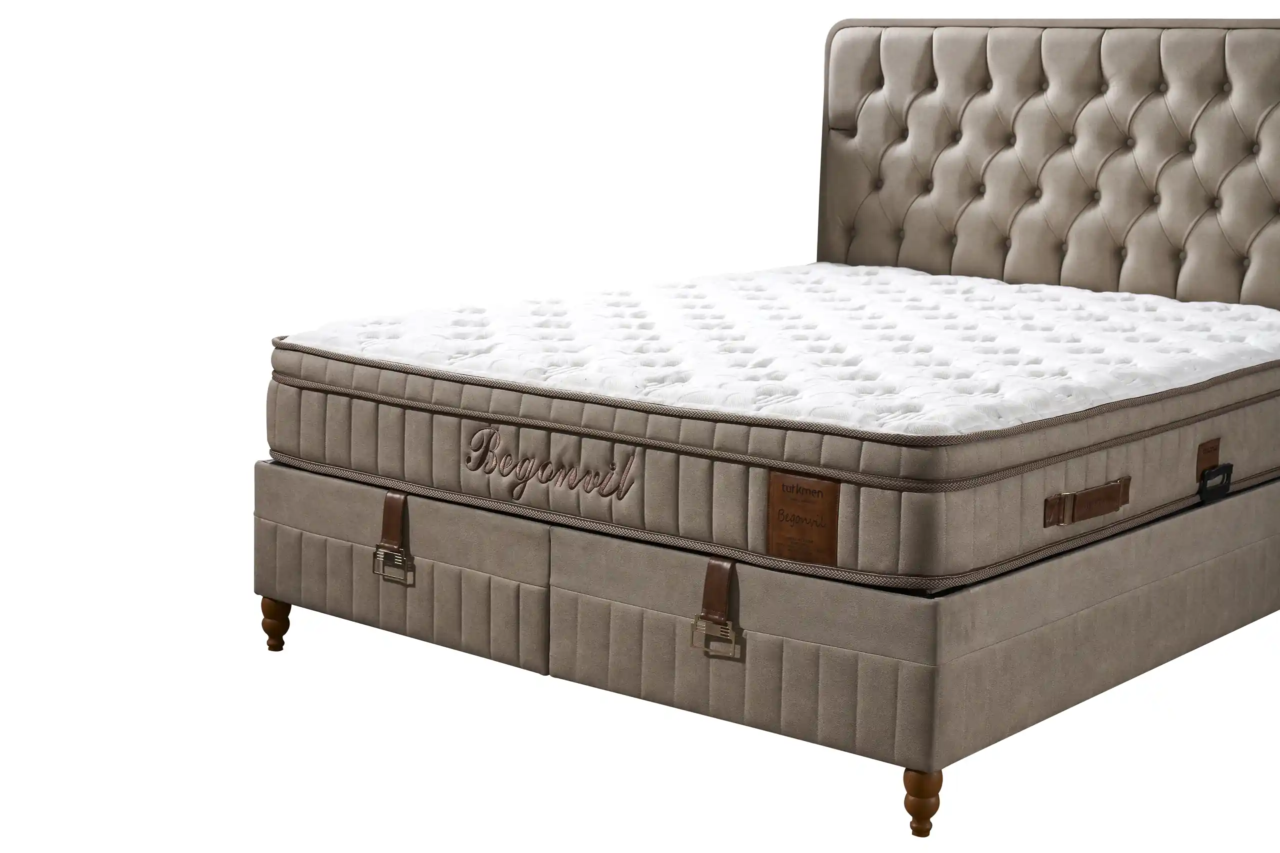Salteaua specială inclusă în setul patului Begonvil este proiectată pentru a oferi o experiență de somn de neuitat. Cu un strat confortabil și suport optim, această saltea premium se mulează perfect pe forma corpului, eliminând punctele de presiune și oferind un somn odihnitor și revitalizant în fiecare noapte. În plus, spațiul de depozitare integrat cu sistem hidraulic este soluția perfectă pentru optimizarea spațiului din dormitor. Cu acces facil și comod, acest spațiu inteligent oferă o soluție practică pentru depozitarea lenjeriei de pat, a hainelor sezoniere sau a altor obiecte personale, contribuind astfel la organizarea și ordinea în cameră.