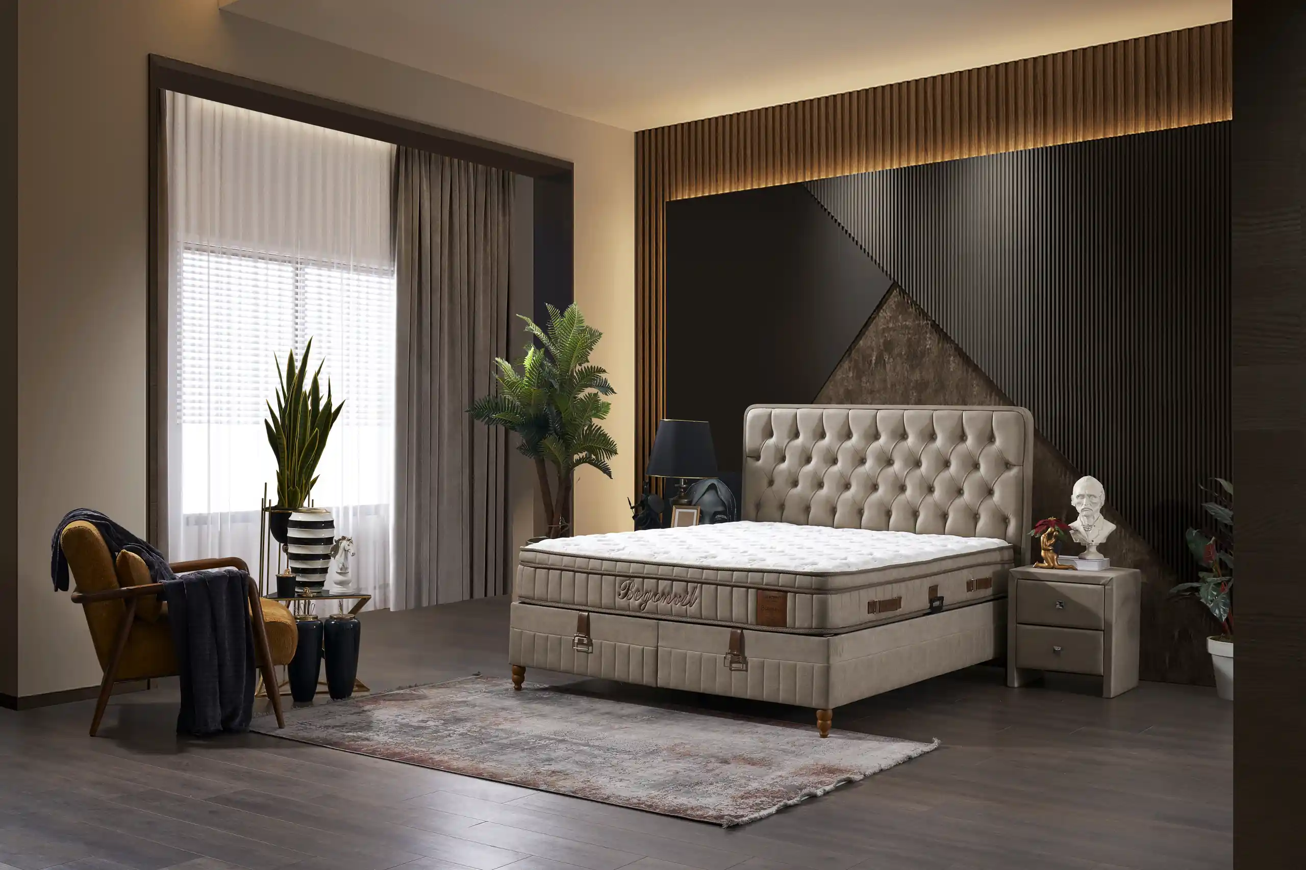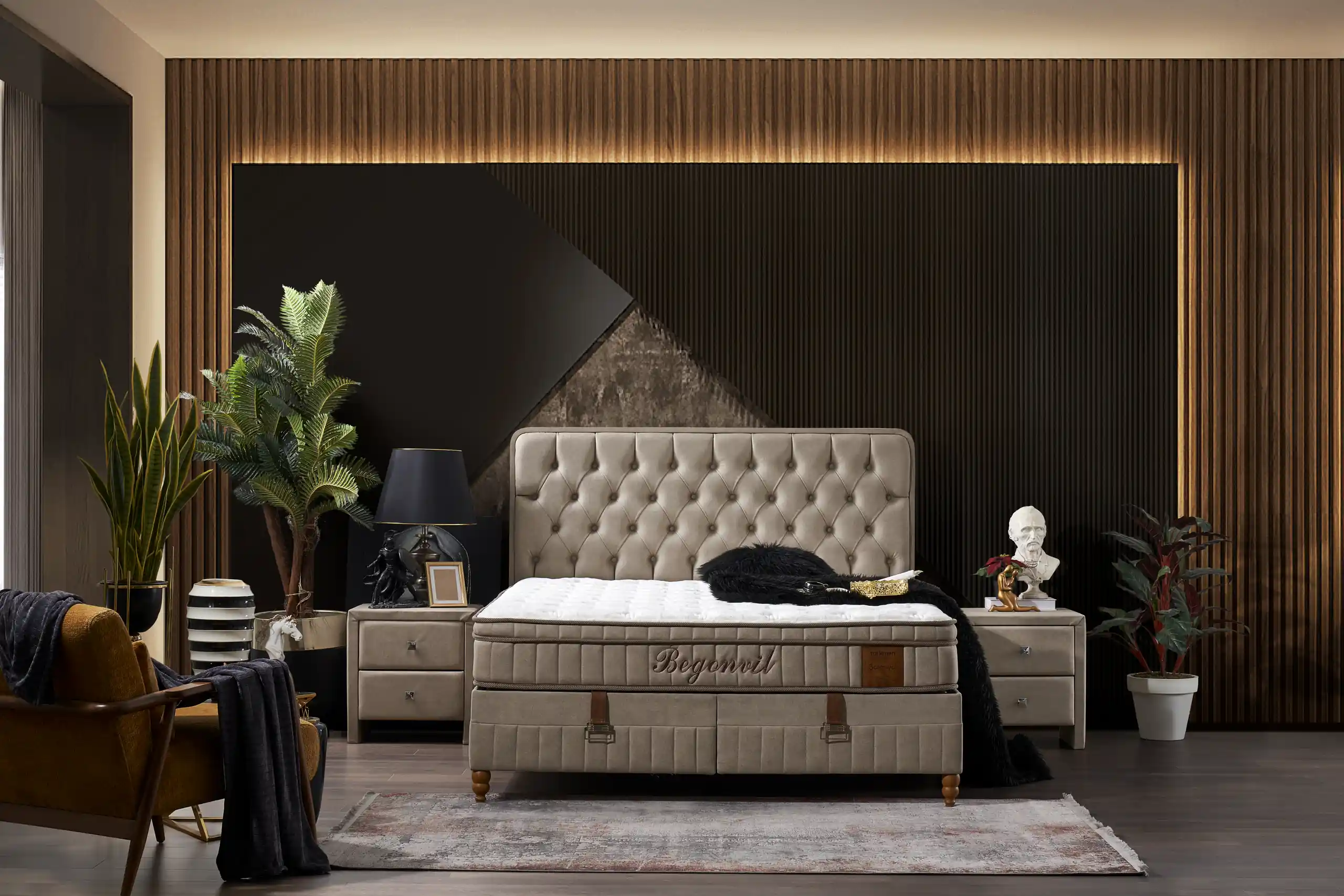 Transformă dormitorul într-un sanctuar de relaxare și eleganță cu patul tapitat de lux Begonvil. Experimentează confortul și rafinamentul de neegalat în fiecare noapte. Patul Begonvil este alegerea ideală pentru cei care caută o combinație perfectă între stil, confort și funcționalitate.