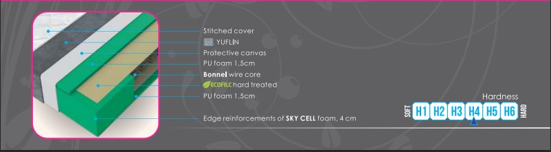 Salteaua ORTOPEDIC face parte din categoria saltelelor cu arcuri și se încadrează în categoria saltelelor cu fermitate și duritate medie, reprezentând o alegere excelentă și potrivită, în special pentru cei care preferă somnul tradițional pe arcuri metalice. Baza sa este formată dintr-un nucleu clasic cu arcuri Bonnelli, precum și o placă de spumă PU înaltă de 1,5 cm plasată pe ambele părți. Modelul de saltea Ortopedic are consolidări pe toate cele patru laturi ale saltelei. Această consolidare este realizată din spumă PU și are o lățime de 4 cm. Ortopedic are o husă matlasată nederanjabilă cu protecție antialergică și un rulou pe margine. Compoziția husei este de 60% bumbac și 40% lycra. O saltea din clasa economică, dar cu straturi de înaltă calitate din spumă PU plasate pe ambele părți, având consolidări laterale din spumă Sky Cell, are caracteristici de durabilitate sporită și utilizare confortabilă pe termen lung.